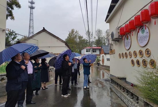 隨后采風(fēng)團(tuán)一行冒雨到位于尹集鎮(zhèn)的省級(jí)愛國主義、國防知識(shí)教育基地虎頭山新四軍革命烈士陵園,接受紅色愛國主義和國防知識(shí)教育,并進(jìn)行了紅色文化采風(fēng)。結(jié)束了虎頭山愛國主義教育基地采風(fēng)后,大家又到尹集鎮(zhèn)百草園AAA美麗鄉(xiāng)村風(fēng)景區(qū),省級(jí)五星黨支部村姬莊村實(shí)地進(jìn)行了采風(fēng)。
