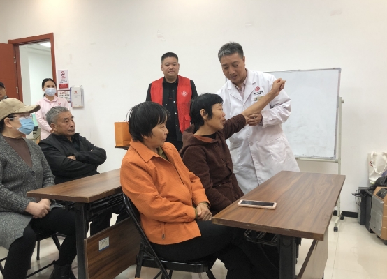 10月20日上午,社區(qū)活動室的義診現(xiàn)場,前來咨詢就診的轄區(qū)居民絡(luò)繹不絕。工作人員引導(dǎo)老人有序入座,醫(yī)務(wù)人員手把手教老人們指認(rèn)穴位,講解按摩方法,并送上中藥保健包。同時還為老年人現(xiàn)場針灸,詳細(xì)詢問近期身體狀況、提供就醫(yī)用藥建議和健康生活指南。