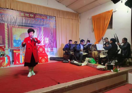 中新資訊網(wǎng)11月15日電(張國(guó)強(qiáng) 白東亮)11月11日周末,在河南省革命老區(qū)重點(diǎn)鎮(zhèn)舞鋼市尹集鎮(zhèn)姬莊村杏林廣場(chǎng)上,朱欽亮又帶著他的革命老區(qū)劇社到該村免費(fèi)送戲娛樂戲迷群眾!跺幟腊浮、《穆桂英掛帥》、《朝陽溝》等精彩戲曲唱段表演,讓姬莊村前來看戲的群眾又過了一場(chǎng)戲癮。