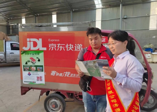 活動現(xiàn)場,該行工作人員向京東快遞員工發(fā)放人民幣知識相關(guān)宣傳折頁,講解人民幣反假知識、殘缺污損人民幣兌換辦法、舉報假幣犯罪獎勵政策等內(nèi)容,重點強調(diào)“人民幣是我國的法定貨幣,拒收人民幣是違法行為,任何單位和個人不得拒收人民幣”等相關(guān)知識。同時,該行工作人員為快遞車張貼“共創(chuàng)平安寄遞”宣傳海報,增強大家的反假意識。