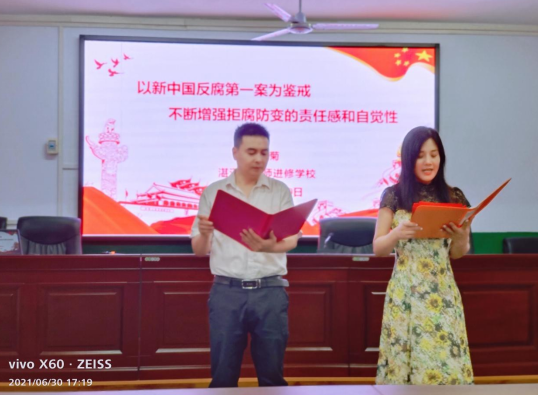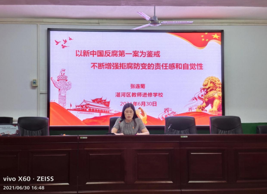 隨后,該校為湛河區(qū)“學(xué)習(xí)強(qiáng)國(guó)”挑戰(zhàn)賽獲獎(jiǎng)人員頒獎(jiǎng)。結(jié)束后,校黨支部書(shū)記、校長(zhǎng)張連菊同志給全體黨員上黨課:題目是《以新中國(guó)反腐第一案為鑒戒,不斷增強(qiáng)拒腐防變的責(zé)任感和自覺(jué)性》,學(xué)校班子成員和全體黨員干部、教職員工共同聆聽(tīng)黨課。