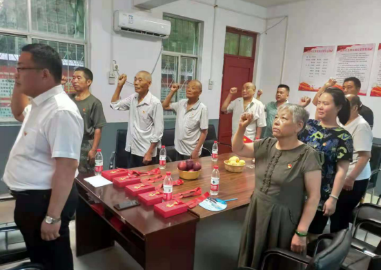 當(dāng)天早上7時(shí)半,家住尹集鎮(zhèn)大劉莊村寨溝村民組95歲52年黨齡的張希賢,張新莊組89歲66年黨齡的牛姣等老人,就吃過早飯來到村黨員群眾服務(wù)中心參加建黨百年慶;顒(dòng)。當(dāng)天大劉莊村黨部在鄉(xiāng)村振興駐村第一書記張朝輝,村黨支部書記田萬甫的主持下,組織全村在家的30多名黨員舉行了升國旗、重溫入黨誓詞、為8位黨齡50年以上老黨員發(fā)放紀(jì)念章,聽取黨史教員講黨史,召開黨員民主生活會(huì)、座談會(huì)等活動(dòng)以此來紀(jì)念中國共產(chǎn)黨成立100周年。