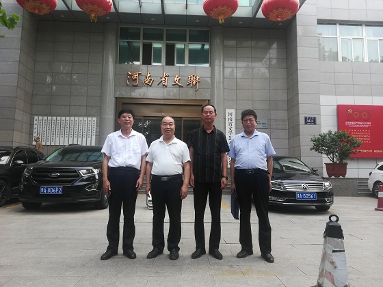 淅川范蠡研究會(huì)考察組與河南省民間文藝家協(xié)會(huì)秘書(shū)長(zhǎng)劉炳強(qiáng)(左二)在河南省文聯(lián)門前合影