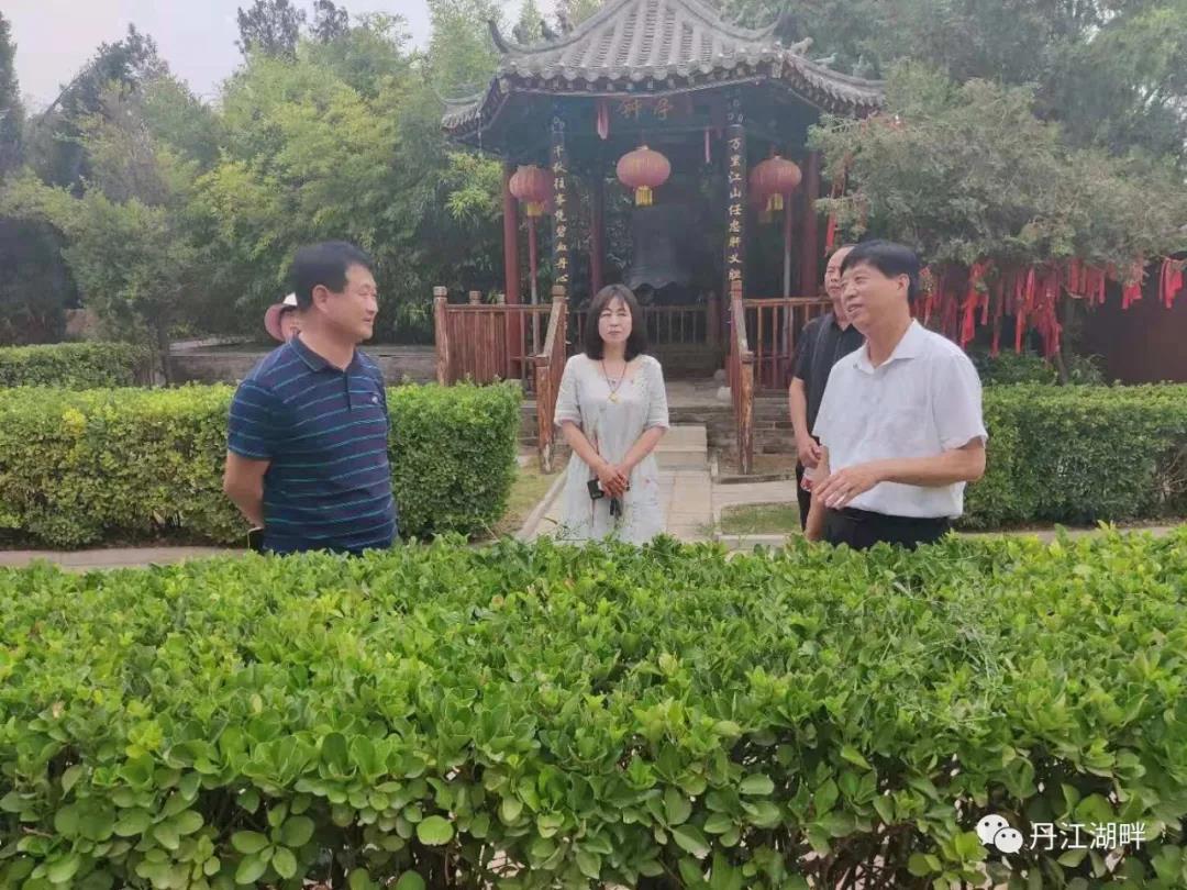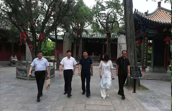 淅川范蠡研究會(huì)考察組在衛(wèi)輝市委宣傳部副部長(zhǎng)張建軍(左三)、衛(wèi)輝市文聯(lián)主席李志蔚(右二)陪同下考察比干文化建設(shè)