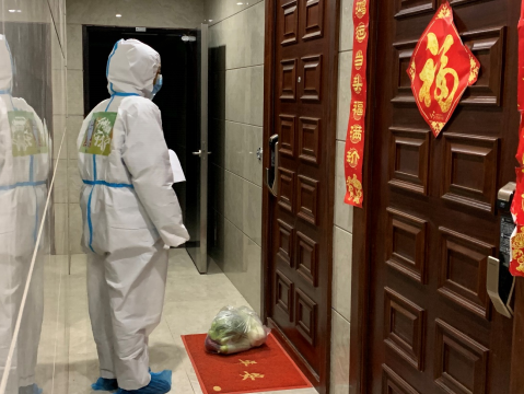 物業(yè)工作人員上門為業(yè)主送菜