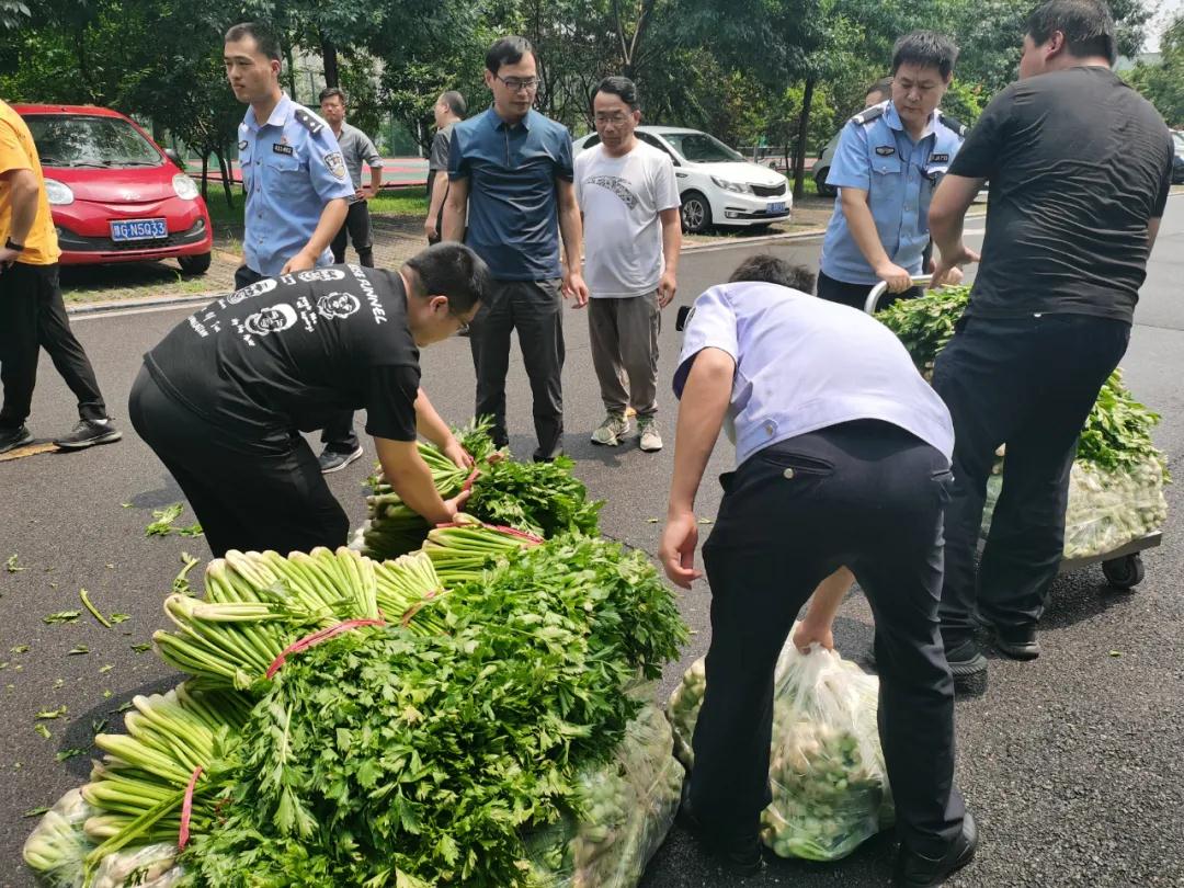 7月27日中午12點(diǎn)50分,干警韋修慶接到戰(zhàn)友王慶杰、王文超的電話,他們是山東省菏澤市曹縣邵莊鎮(zhèn)人。從網(wǎng)上了解到災(zāi)情后,他們載著5噸蔬菜來支援輝縣。