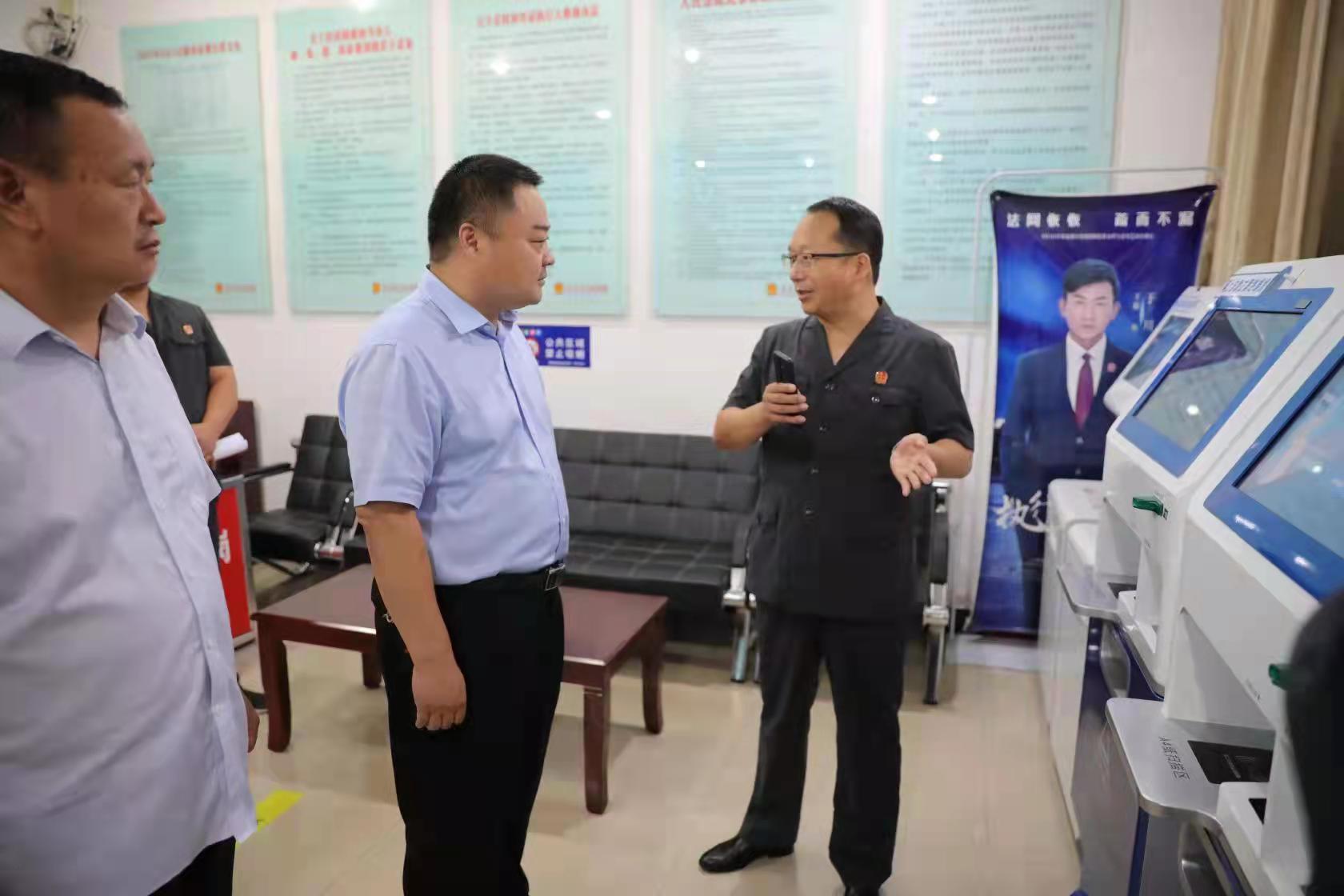 調(diào)研組首先參觀了訴訟服務(wù)中心,查看了該院網(wǎng)上自助立案終端機(jī)、訴狀輔助生成一體機(jī)和訴訟風(fēng)險評估終端機(jī)的使用情況,并了解了立案庭平時工作及跨域立案流程和注意事項(xiàng),實(shí)地查看了互聯(lián)網(wǎng)法庭,對縣法院利用信息化手段方便人民群眾的做法給予肯定。