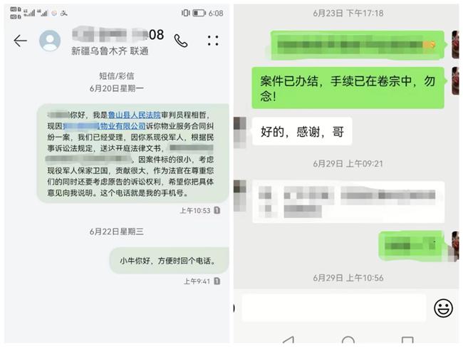 2019年8月10日,魯山縣某物業(yè)與業(yè)主小劉簽訂《服務(wù)協(xié)議》,自2020年1月14日起截止到起訴之日,小區(qū)物業(yè)“尋找”小劉催要物業(yè)費(fèi)未果,訴至法院。受理該案后,由于物業(yè)提供小劉的手機(jī)號碼為空號,工作一時(shí)難以開展。幾經(jīng)尋找,程法官聯(lián)系到小劉家人,得知小劉是一名現(xiàn)役邊防軍人。