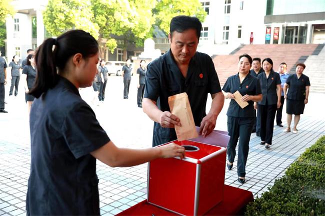 中新河南網(wǎng)8月5日電(李亞娜)8月5日,寶豐縣人民法院舉行“落實(shí)‘第一議題’制度筑牢政治思想根基”主題黨日活動,活動由機(jī)關(guān)黨委副書記李應(yīng)敏主持,院黨組副書記、副院長朱正栩及全體黨員參加。