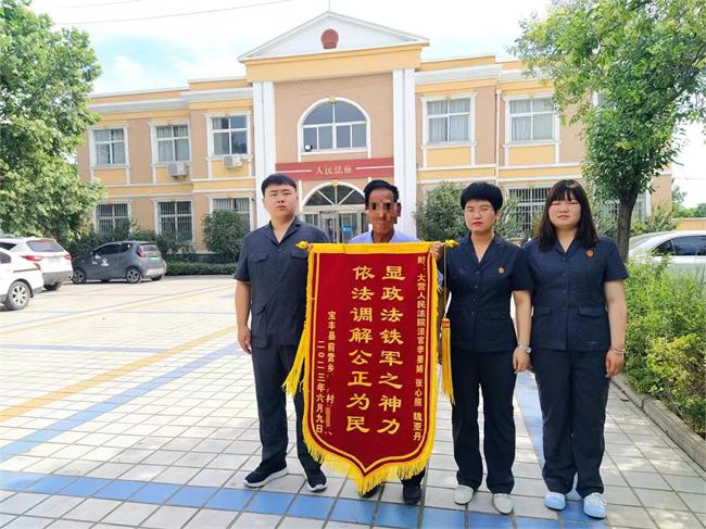 中新河南網(wǎng)(李要娟)近日,寶豐縣人民法院大營人民法庭成功調(diào)解一起特殊的民間借貸糾紛案,通過承辦法官的耐心細致調(diào)解,雙方達成還款協(xié)議,原告主動“讓利超額利息”2萬元,當場為法官公正執(zhí)法點贊,事后致送錦旗表達謝意。