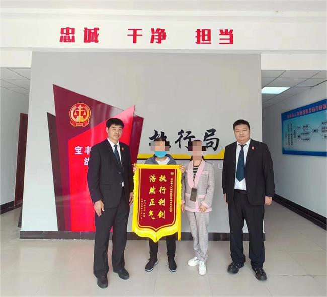 “真是太感謝寶豐法院的同志了,法網(wǎng)恢恢,總算是抓到他了。”2023年10月9日上午,陳女士和隨行律師千里迢迢從澳門來到寶豐法院,送來了一面寫著“執(zhí)行利劍,浩然正氣”的錦旗。