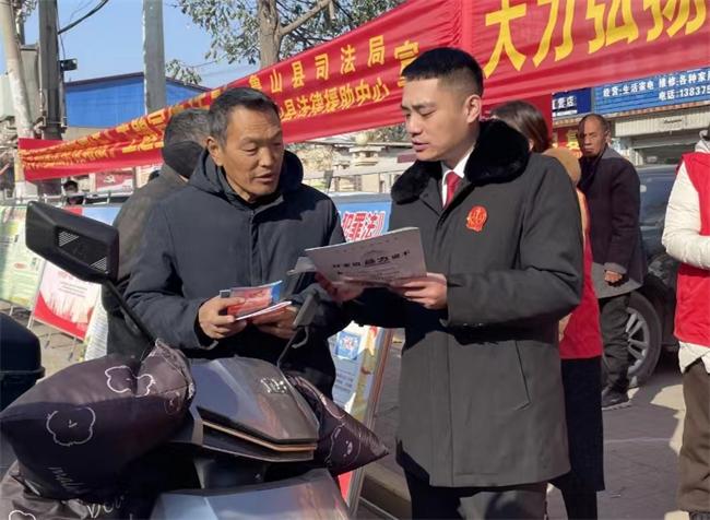 在磙子營鄉(xiāng),張良法庭與當?shù)剜l(xiāng)政府、派出所、司法所“一庭兩所+政府”四方聯(lián)動,在轄區(qū)主街道一起支起了“攤位”,共筑美麗鄉(xiāng)村法治底色,并采用懸掛橫幅、設(shè)置普法宣傳版面、法律咨詢臺、發(fā)放憲法宣傳手冊、解答法律問題等方式,為群眾帶來了一場煙火氣十足的“法治盛宴”。