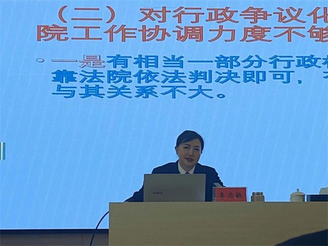 會(huì)上,李應(yīng)敏以行政訴訟發(fā)展史及寶豐法院2018年以來審理行政案件為切入點(diǎn),從區(qū)域、領(lǐng)域、違法類型三個(gè)方面對(duì)行政機(jī)關(guān)如何提升行政執(zhí)法效能、降低行政機(jī)關(guān)敗訴情況,以及拆違類型案件程序賠償、交警強(qiáng)制對(duì)駕駛?cè)蓑?yàn)血行為是否屬于行政訴訟受案范圍等進(jìn)行分析。隨著“放管服”改革不斷深入,行政機(jī)關(guān)執(zhí)法規(guī)范化水平不斷提升,其中行政補(bǔ)償、行政賠償類案件下降幅度顯著,行政爭(zhēng)議訴源治理工作取得顯著成效,行政涉訴行為主要集中在行政登記、行政強(qiáng)制、舉報(bào)投訴、行政處罰、政府信息公開、行政復(fù)議和不履行法定職責(zé)等方面,涉及交通、環(huán)保、勞動(dòng)社會(huì)保障、公安和資源等行政管理領(lǐng)域的案件增勢(shì)顯著。導(dǎo)致行政機(jī)關(guān)敗訴的主要原因:一是證據(jù)不足,行政機(jī)關(guān)在訴訟中未能提供充足的證據(jù)來支持其決定的合法性;二是違法決定,行政機(jī)關(guān)的決定存在違法行為,如超越權(quán)限、違反程序等;三是不當(dāng)使用裁量權(quán),行政機(jī)關(guān)在行使裁量權(quán)時(shí)存在濫用或錯(cuò)誤的情況,導(dǎo)致決定被撤銷;四是程序違法,行政機(jī)關(guān)在作出行政行為時(shí)沒有合法程序意識(shí),侵犯行政相對(duì)人的合法權(quán)益。
