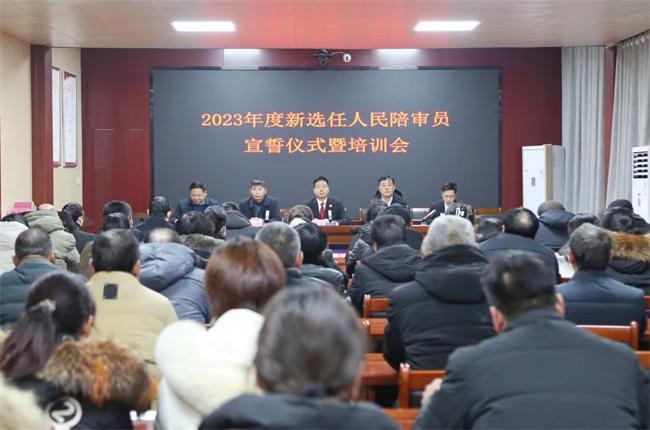 中新河南網(wǎng)(耿海鑫 廉炳南)為增強人民陪審員的榮譽感、責(zé)任感、使命感,進一步提升人民陪審員的業(yè)務(wù)水平和工作能力。1月19日上午,魯山縣法院舉行新任人民陪審員就職宣誓儀式暨崗前業(yè)務(wù)培訓(xùn)會。院黨組副書記、副院長郭國會,縣人大常委會委員、法工委主任王延生,縣人大常委會委員、選工委副主任郭二曉,縣司法局主任科員姚小飛以及新任人民陪審員出席活動,活動由院黨組成員、政治部主任戴遠哲主持。