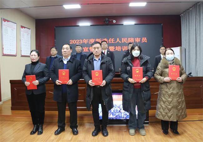 郭國會指出,人民陪審員制度是社會主義司法民主的重要組成部分,是保障司法公正、克制司法腐敗、監(jiān)督司法正義的重要保障環(huán)節(jié),對提高司法效率和人民參與審判有著不可替代的作用。新任人民陪審員要認真履行職責(zé),充分認清人民陪審員工作重要性,積極參加庭審與合議,發(fā)揮各自在工作和生活中積累的經(jīng)驗,推動和幫助合議庭依法履職、依法裁判,樹立和維護司法權(quán)威,努力為社會主義法治建設(shè)做出積極貢獻,要嚴明工作紀律,全面提升人民陪審員參審能力。