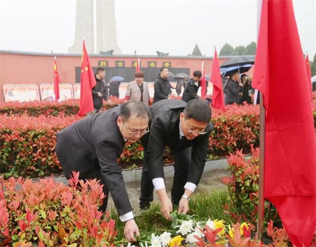 上午9時30分,活動正式開始,全體黨員在烈士紀念碑前整齊列隊,奏唱《中華人民共和國國歌》,國歌聲落,大家懷著沉重的心情低頭向革命烈士鞠躬默哀,伴隨著《獻花曲》,10名禮兵邁著鏗鏘有力的步伐,向革命先烈敬獻花籃。