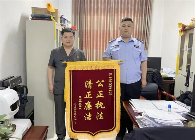 中新河南網(wǎng)(郭智遠 趙銘翼)近日,魯山縣法院執(zhí)行局執(zhí)結(jié)一起歷時多年的“終本”案件。申請人李某將一面寫有“公正執(zhí)法清正廉潔”的錦旗送到執(zhí)行干警手中,向執(zhí)行干警表達了內(nèi)心的感謝。