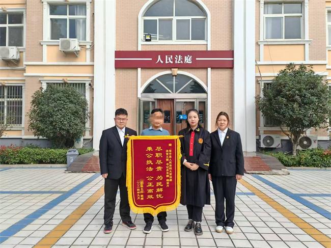 事后,當(dāng)事人李某委托代理人來(lái)到大營(yíng)人民法庭,將一面印著“盡職盡責(zé)為民解憂秉公執(zhí)法公正高效”的錦旗送到案件承辦人王斐法官手中,對(duì)法官用心用情調(diào)解,高效化解矛盾表示感謝。