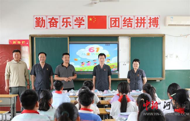 中新河南網(wǎng)(周亞飛)少年兒童是祖國(guó)的未來(lái)、民族的希望,少年兒童的健康成長(zhǎng)關(guān)系著家庭的幸福,關(guān)乎著社會(huì)的和諧與穩(wěn)定。為切實(shí)保障未成年人健康成長(zhǎng),進(jìn)一步增強(qiáng)留守兒童自我保護(hù)意識(shí)和法治意識(shí),5月29日上午,在“六一”兒童節(jié)來(lái)臨之際,寶豐縣人民法院黨組書(shū)記、代院長(zhǎng)桓旭一行,走進(jìn)李莊鄉(xiāng)翟西小學(xué)開(kāi)展“用法治守護(hù)讓愛(ài)心伴成長(zhǎng)”六一兒童節(jié)關(guān)愛(ài)活動(dòng),與師生們一起歡度“六一”,為留守兒童們送上了一堂生動(dòng)的法治課及節(jié)日的慰問(wèn)。