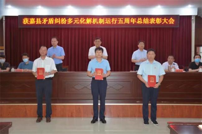中新河南網8月12日電(王凱琪 張珂瑜)7月1日,在獲嘉縣矛盾糾紛多元化解機制運行五周年總結表彰大會上,獲嘉縣矛盾糾紛調解中心主任王隨芳被表彰為功臣調解員。獲嘉縣委書記趙明俊親自為他頒發(fā)榮譽證書,會場響起熱烈掌聲。