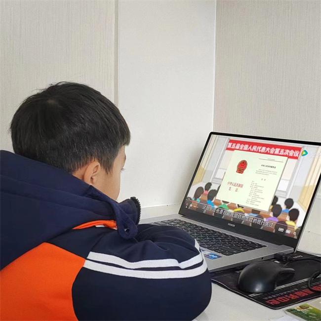 當(dāng)然,還有憲法誦讀、講述憲法故事等形式。聽!孩子們抑揚(yáng)頓挫的憲法誦讀聲,聲情并茂的憲法故事宣講……活動宛如一灣清泉流進(jìn)學(xué)生心田,猶如一顆種子深植在學(xué)生心底,孩子們的法律意識由被動到主動,由自發(fā)到自覺,知法、學(xué)法、用法、維法的意識在不覺間融入了價值觀。