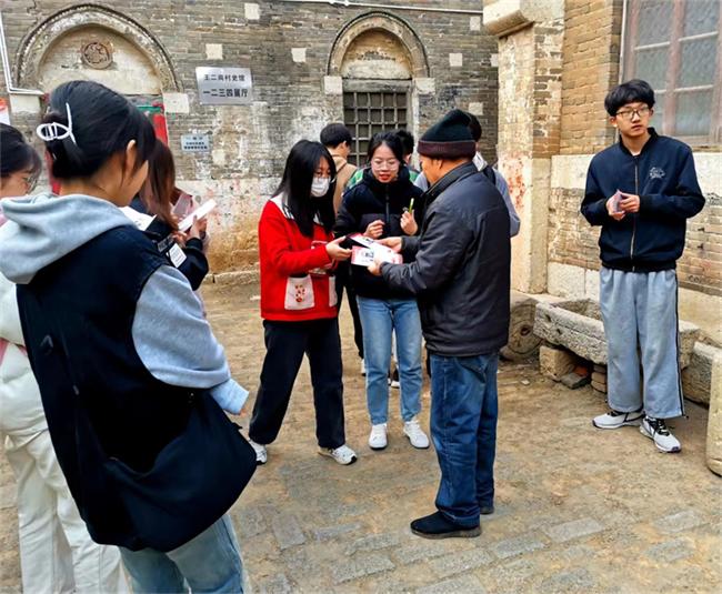 他們來到王二崗紅色文化教研基地,在基地副主任張峽和村委會主任趙衛(wèi)東的帶領下,首先參觀了王二崗村史展、革命斗爭史展、知青記憶展,讓安陽工學院師生了解該村利用清代建筑宅院籌建紀念館的獨特資源。