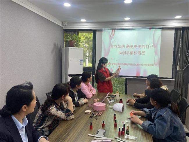 5月15日上午,平原社區(qū)開展“青春如約,遇見更美的自己”助創(chuàng)幸福和諧星活動(dòng)。課程中,美妝老師先介紹了一下美妝的意義,然后細(xì)致講解了一下美妝的理論,參與的美妝愛好者根據(jù)自己的愛好,結(jié)合老師的講解,對(duì)美妝有了更進(jìn)一步的認(rèn)識(shí)。