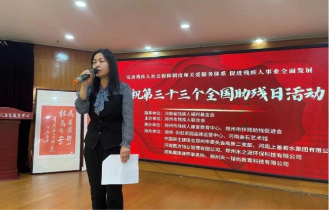 在愛心捐助儀式上,鄭州市殘疾人康復(fù)教育中心主任劉正義、民建鄭州市委會專職副主委于珊出席活動并發(fā)言。民建高新二支部主委李麗君代表會員和愛心企業(yè)向鄭州市扶殘助殘促進會捐贈價值三萬元的圖書和其他愛心物資。鄭州市扶殘助殘促進會會長盧超向鄭州啟晨裝潢包裝科技有限責(zé)任有限公司、鄭州天一镕尚教育科技有限公司等愛心企業(yè)家頒發(fā)榮譽證書。殘疾人演員現(xiàn)場為愛心人士獻上精彩的文藝演出,通過不同形式的文藝節(jié)目,展現(xiàn)了他們自強不息追求美好生活的新時代奮斗精神。