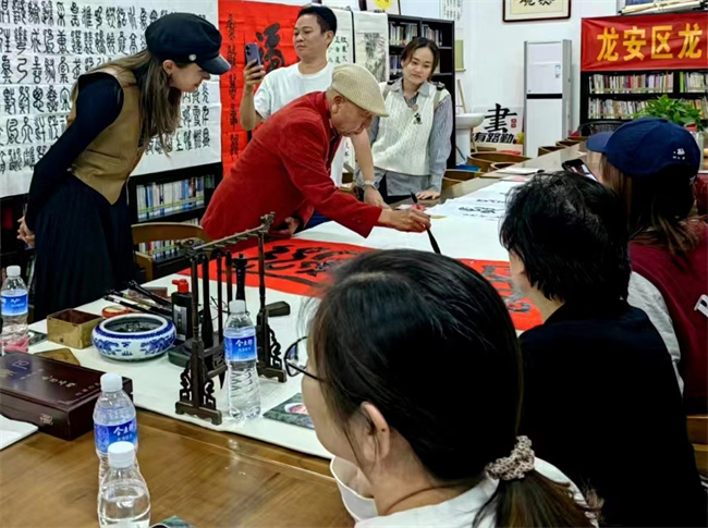 中新河南網(wǎng)(劉永超 龍巖 張麗萍)金秋十月,在這碩果累累的季節(jié)里,龍安區(qū)區(qū)委辦公室組織外國留學(xué)生走進龍安區(qū)甲骨文書屋,參觀、學(xué)習(xí)、交流中華傳統(tǒng)非物質(zhì)文化遺產(chǎn)鳥蟲篆文字。