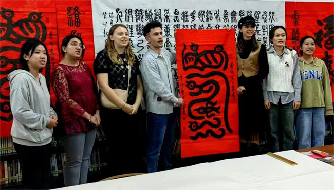 通過鳥蟲篆文字的現(xiàn)場交流學(xué)習(xí),使外國留學(xué)生對中國文字的博大精神加深了細致的了解,對中國先人用智慧發(fā)展文字的成果,更加敬仰。