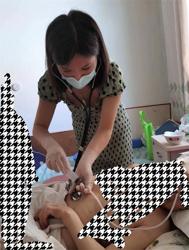 還有一件事,讓她記憶猶新。2017年11月冬天的一個(gè)早晨,接到老年患者孫先生閨女的電話,(孫先生腦出血,氣管切開,全身癱瘓,處于淺昏迷狀態(tài),老伴離異,只有一女,這些年父女倆相依為命,腦出血時(shí)女兒剛訂婚,花光積蓄,女兒又拿出了彩禮錢,家中一直由女兒照顧)說:一大早去給父親從胃管打飯,注射器推不動(dòng)。經(jīng)詢問得知,沒有注射器使用時(shí)間過久的情況。按照電話中說的路線,她頂著寒風(fēng),步行向患者家走去,因不太熟悉路,她走了半個(gè)多小時(shí)才找到孫先生的家。只見屋里空間狹小,只容納一張小床和一個(gè)雙開門柜子,房間陰暗潮濕,站了片刻就讓人有種窒息感。當(dāng)她再次去下胃管時(shí)候,一個(gè)瘦骨嶙峋,皮膚蒼白,呼吸微弱的老爺子已經(jīng)變了模樣,骶尾部,肩部已經(jīng)出現(xiàn)了不同程度的壓瘡。她熟練地幫患者下了胃管,博得其女兒的連連道謝。