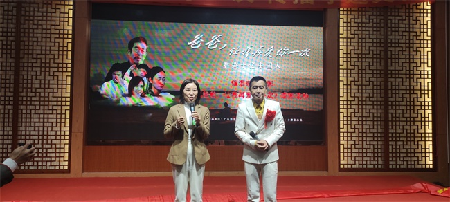 活動(dòng)現(xiàn)場(chǎng),電影《開國(guó)大典》中周總理扮演者張江山向觀眾介紹鄧建國(guó)導(dǎo)演的孝道電影《爸爸,讓我再愛你一次》“很真實(shí)、很感人”,并和主辦方一起為陳志平和書法家丁建國(guó)頒發(fā)榮譽(yù)證書,向下一個(gè)孝心傳遞接力城市蘇州傳遞了接力棒。
