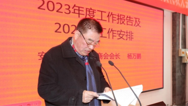 鋼材商會(huì)會(huì)長(zhǎng)楊萬(wàn)鵬作了工作報(bào)告,他不但總結(jié)了三年疫情給商會(huì)各項(xiàng)工作造成的嚴(yán)重?fù)p失,更重要是贊揚(yáng)商會(huì)全體成員聽(tīng)黨話、跟黨走,團(tuán)結(jié)一心,排除萬(wàn)難,戰(zhàn)勝疫情,干事創(chuàng)業(yè)的信心、決心和斗志。他特別強(qiáng)調(diào),為學(xué)習(xí)好,宣傳好,落實(shí)好黨的二十大會(huì)議精神,以嶄新的精神面貌邁進(jìn)新的一年,以愚公移山的勁頭,站在新時(shí)代的潮頭,開(kāi)創(chuàng)2024年各項(xiàng)工作的新局面。
