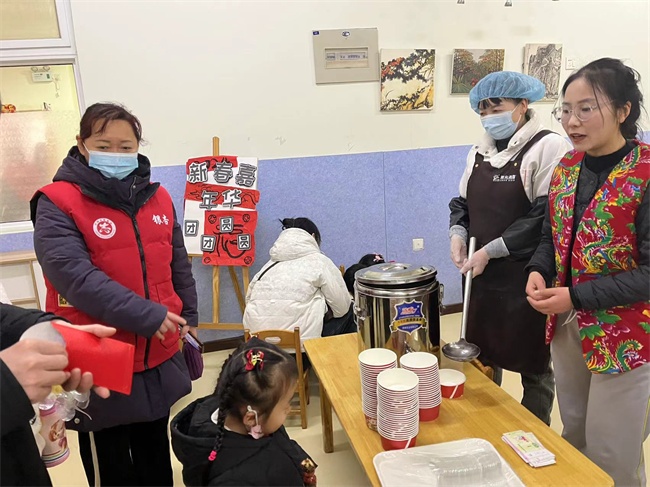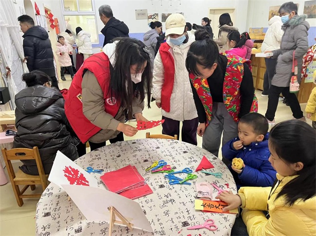 當(dāng)日下午,在一片歡呼聲中,“廟會”活動拉開帷幕。“廟會”里設(shè)有傳統(tǒng)小吃街、民俗游樂街、義賣活動等。在現(xiàn)場,參與活動的小朋友和大人們可以親手寫對聯(lián)、購買自己喜歡的年貨、品嘗具有年味的湯圓、動手剪出心儀的年畫,歡歡喜喜迎接新年的到來。活動現(xiàn)場,還設(shè)置了獨具特色的游戲活動。套圈、運球、傳統(tǒng)玩具競賽、猜燈謎.……“廟會”把民俗文化融入游戲當(dāng)中,讓大家在游戲中感受到傳統(tǒng)文化的魅力。同時,社區(qū)工作人員還對垃圾分類和反詐騙進行宣傳,通過設(shè)置分類垃圾桶等形式向居民普及垃圾分類知識,提醒居民們保護環(huán)境,垃圾入框。