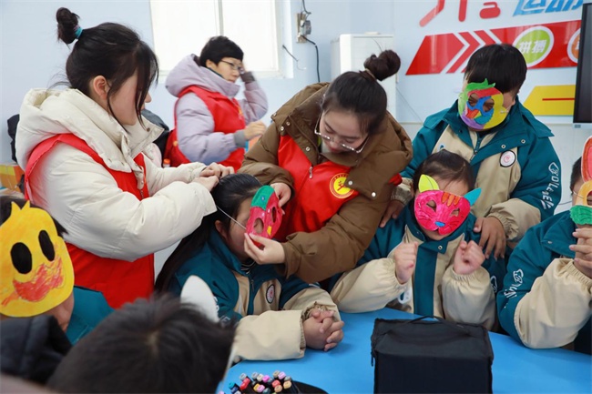 該校文化藝術(shù)部幼教專業(yè)師生精心準(zhǔn)備了各式各樣的白色動物面具,讓志愿者帶領(lǐng)孩子在面具上涂上自己喜歡的的五顏六色,正如他們現(xiàn)在的年紀(jì)風(fēng)貌,陽光燦爛。