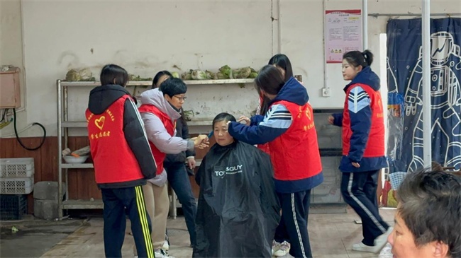 張冬梅老師還以自身專業(yè)為引領(lǐng),帶領(lǐng)商貿(mào)旅游部學(xué)生為老人們義務(wù)理發(fā),為老人們洗頭等,人人爭先恐后,不怕臟累。