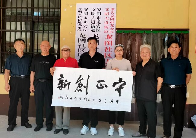 當(dāng)天龍安區(qū)文聯(lián)、河南省華夏文明促進(jìn)會豫北書畫院、龍圖街甲骨文書屋應(yīng)龍圖社區(qū)邀請。組織書法家深入基層,在社區(qū)和黨員、干部、居民共同書寫歌領(lǐng)黨的書法作品進(jìn)行交流,決心在黨的領(lǐng)導(dǎo)下,大力弘揚中華民族傳統(tǒng)文化,增加人民群眾的精神食糧。