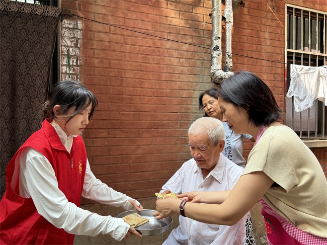 在活動現(xiàn)場,培訓(xùn)師傅通過理論與實(shí)踐相結(jié)合傳授雜糧煎餅的制作方法和技巧,重點(diǎn)講解了面糊配方、甜面醬、脆餅的做法和攤煎餅手法,直到學(xué)員們掌握了操作的每一個流程,同時講解了雜糧餅的由來和故事,隨后,學(xué)員們親自動手操作,攤面、磕雞蛋、抹醬,一絲不茍,活動現(xiàn)場氣氛其樂融融。大家品嘗著自己做的酥香脆口煎餅,那個酥脆的“咔嚓”聲,伴隨著入口的各種食物,真的是太棒了。最后,社區(qū)工作人員和志愿者為行動不便的老人送去了雜糧煎餅,老人高興得合不攏嘴,非常感謝社區(qū)送來的溫暖。