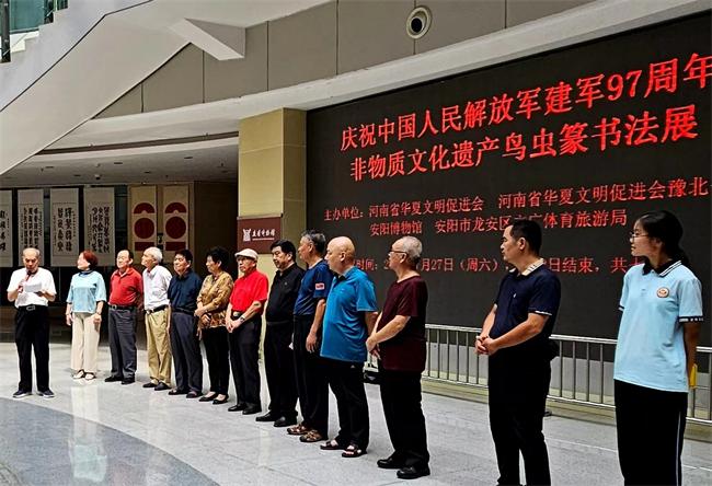 今年是偉大的中國人民解放軍建軍97周年,為了贊頌中國人民解放軍保衛(wèi)祖國和人民的豐功偉績,河南省華夏文明促進會豫北書畫院特承辦此次非物質(zhì)文化遺產(chǎn)鳥蟲篆書法展