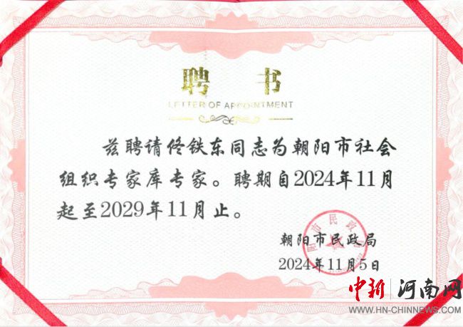 中新河南網(wǎng)(田波濤)朝陽市聚和社會工作志愿服務(wù)中心理事長佟鐵東先生近日榮獲朝陽市民政局頒發(fā)的殊榮,被正式聘為朝陽市社會組織專家?guī)鞂<。這一消息無疑是對佟鐵東先生長期以來在社會工作領(lǐng)域所做貢獻的肯定與認(rèn)可。