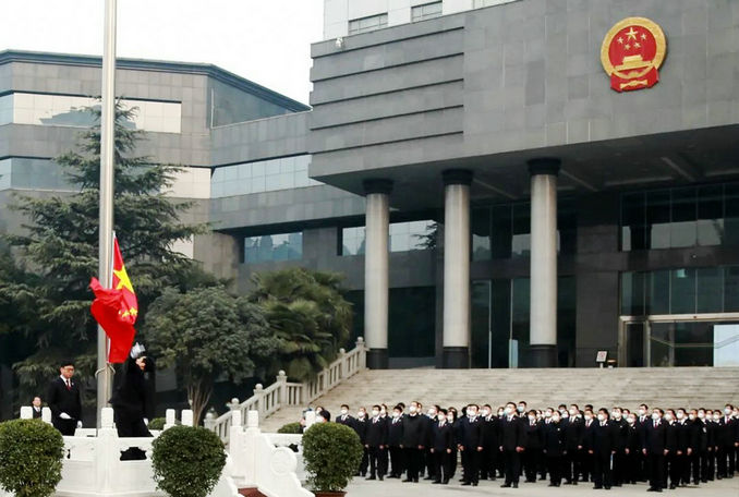 上午8時整,升旗儀式正式開始。全體檢察干警整齊列隊、精神抖擻,在雄壯的國歌聲中,面向國旗行注目禮,整個活動秩序井然,莊重熱烈。