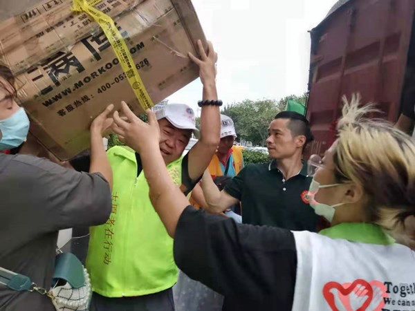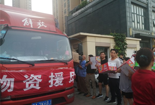 當(dāng)?shù)弥珖?guó)各地愛心人士的救援物資到鄭時(shí),省健康產(chǎn)業(yè)發(fā)展研究會(huì)志愿團(tuán)的廣大志愿者聞“訊”而動(dòng),“豫”愛同行。志愿者張?jiān)拭、喬博文沖鋒在裝卸救援物資前沿,在酷熱的天氣,密閉燥熱的車廂里擺裝物資,滿頭大汗,衣服都遢濕完了,仍不下車休息,楊冬、尚雯等眾多女士志愿者連續(xù)多日搬運(yùn)救援等物品,有時(shí)裝卸物資到凌晨2點(diǎn)左右來支援救災(zāi)一線。他們用自己的實(shí)際行動(dòng)傳遞愛,彰顯河南省健康產(chǎn)業(yè)發(fā)展研究會(huì)志愿團(tuán)的奉獻(xiàn)精神。
