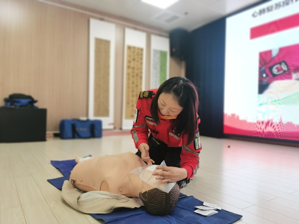 紅十字風(fēng)馬旗救援隊趙老師為大家進(jìn)行應(yīng)急知識詳細(xì)的講解,包括常見的的煤氣中毒、心臟病突發(fā)、呼吸道堵塞、觸電、溺水等。并告訴大家一個小知識即黃金四分鐘:腦細(xì)胞在循環(huán)停止4分鐘即發(fā)生嚴(yán)重?fù)p害,這段時間是拯救生命的最佳時間。緊接著老師以塑料模特作為教學(xué)工具,講解并模擬在遇到突發(fā)情況下,大家應(yīng)如何自救、呼救、呼救,包括面對溺水利用現(xiàn)場條件實施徒手救助、面對卡喉如何在面臨緊急情況下實施海姆立克急救法等。居民們認(rèn)真聽講,并且都積極提問和回答。之后大家也在指導(dǎo)下大家一一進(jìn)行實操演練,F(xiàn)場的氣氛熱烈,都不禁感嘆今天受益匪淺!