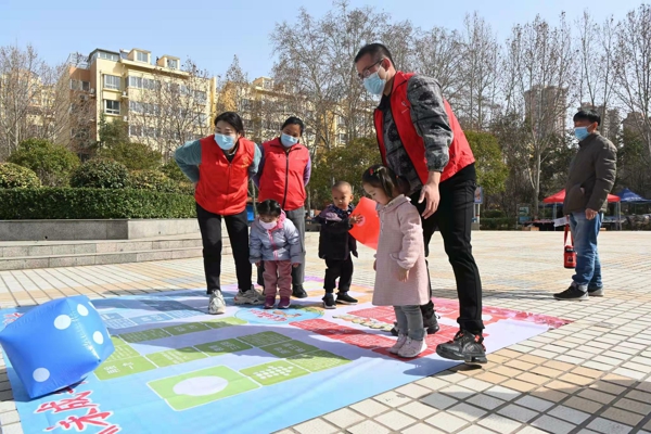 活動(dòng)以宣傳《未成年人保護(hù)法》為主題,以強(qiáng)化未成年人關(guān)愛(ài)保護(hù)為主線,通過(guò)懸掛活動(dòng)條幅、未保法飛行棋游戲以及發(fā)放二七區(qū)未成年人工作站宣傳頁(yè)和《未保法》宣傳手冊(cè)等方式,讓家長(zhǎng)和未成年人了解未成年人保護(hù)法,引導(dǎo)居民強(qiáng)化監(jiān)護(hù)主體責(zé)任意識(shí),依法履行監(jiān)護(hù)職責(zé)和撫養(yǎng)義務(wù)。“耶!我通關(guān)了。”在大家羨慕的眼神中,這位小朋友率先完成了比賽,另一個(gè)小朋友在進(jìn)行表情三連拍,他們這是在干什么呢?原來(lái)是真人版飛行棋來(lái)了。通過(guò)真人版飛行棋進(jìn)行未保法的宣傳,小朋友從起點(diǎn)出發(fā),用擲骰子的方式?jīng)Q定前進(jìn)的步數(shù),遇到關(guān)于未保法的題目就要停下來(lái)答題,擲到題目之外就是小小的懲罰,比如青蛙跳和表情三連拍等等,緊張又刺激的未保法真人飛行棋吸引了一波又一波的小朋友。