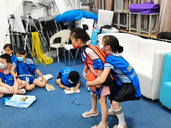 本次活動共有6項區(qū)域,活動還未開始,小記者們就興奮地在各個區(qū)域流連忘返,對AED、道具玩偶“東東”等愛不釋手;顒娱_始,志愿者就將大家分為了3組同時進行,志愿者認真講解、小記者專心聽講并時不時做筆記,在講解完就是大家最為期待的體驗環(huán)節(jié)了。在繩結(jié)大比拼中,他們兩兩檢查對方的繩結(jié)是否合格,在海姆立克急救法中,他們兩兩一組,互相體驗“施救者”與“被救者”,通過親身體驗,掌握這項技能,時間一分一秒過去,我們的活動也走到了尾聲,活動最后,志愿者根據(jù)大家的學(xué)習(xí)掌握情況,為小記者們頒發(fā)了兒童訓(xùn)練營結(jié)業(yè)證書,并告誡他們回去后要將學(xué)習(xí)掌握的知識傳播出去,更多的人掌握到這些安全救護知識。