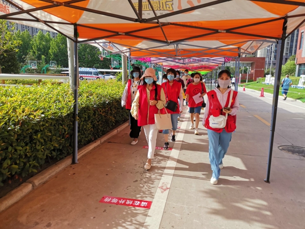驕陽之下,志愿者們不斷穿梭維持秩序,引導學生家長,極大的避免了人員聚集,使此次疫苗接種工作完成的高效有序。五龍口小學師生樹大局,顯大愛,積極接種新冠疫苗,必將筑牢校園免疫屏障,守護好校園的一片藍天!