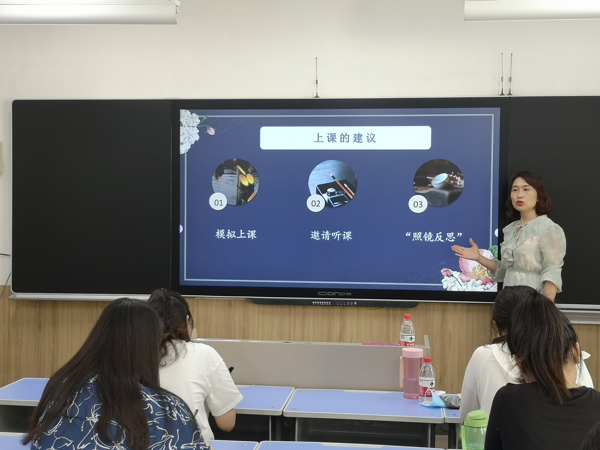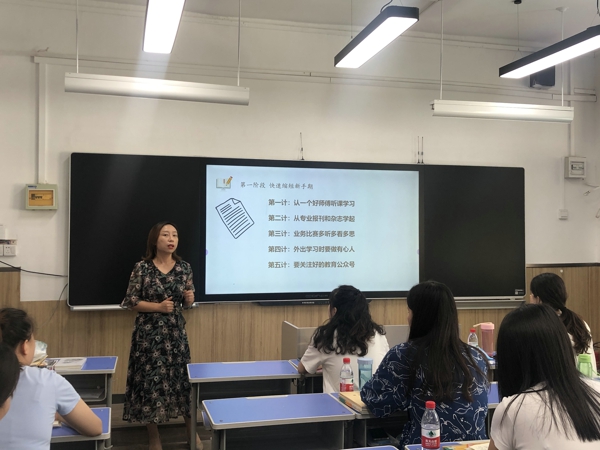 楊蓓副校長對新教師進(jìn)行培訓(xùn)