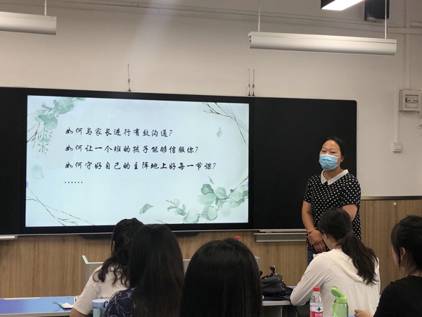 然后,楊蓓副校長通過一個個趣味的小案例,引導(dǎo)大家學(xué)習(xí)如何進(jìn)行家校溝通與班級管理工作,預(yù)設(shè)并解答了進(jìn)行班級管理較為有效的方法,傳授了與家長溝通時的技巧,此外模擬并討論了遇到安全問題的處理辦法。使新教師明確了作為一名教師在班級管理和授課技能方面的努力方向,明晰了學(xué)生安全問題的重要性。