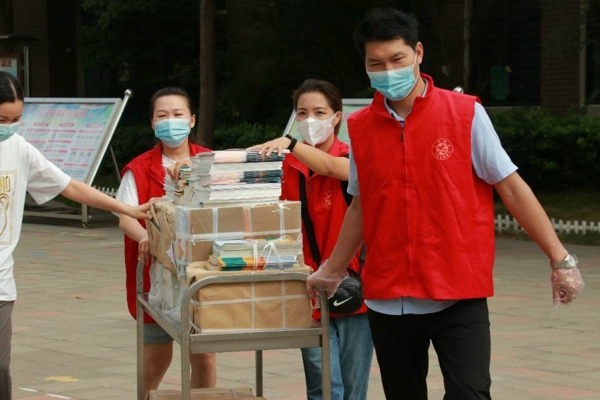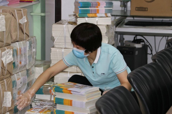 8月26日,二至六年級各班班主任結(jié)合小區(qū)分布和就近原則,通知各班3--5位家長代表,準(zhǔn)時(shí)來到學(xué)校領(lǐng)書地點(diǎn)。一大早,教務(wù)處和安保處現(xiàn)場指導(dǎo)教材發(fā)放與防疫工作,并維持現(xiàn)場秩序。家長代表全程佩戴醫(yī)用防護(hù)口罩,聽從各班班主任及安保人員的指揮,測溫消毒、有序領(lǐng)取教材,力爭最大限度避免人員接觸,做到即拿即走,不在學(xué)校逗留。提前發(fā)放教材,解決學(xué)生居家線上學(xué)習(xí)的需求,確保線上教學(xué)工作的順利、有效地開展。