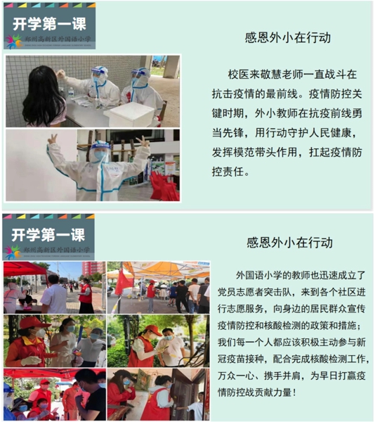 長風破浪會有時,直掛云帆濟滄海。新的學期,邁向新的征途,讓我們“從和衷共濟助啟航,拔節(jié)孕穗共出彩”——鄭州高新區(qū)外國語小學2021-2022學年上期開學課程開始,感受生命教育、祖國大愛、中華傳統(tǒng)文化!